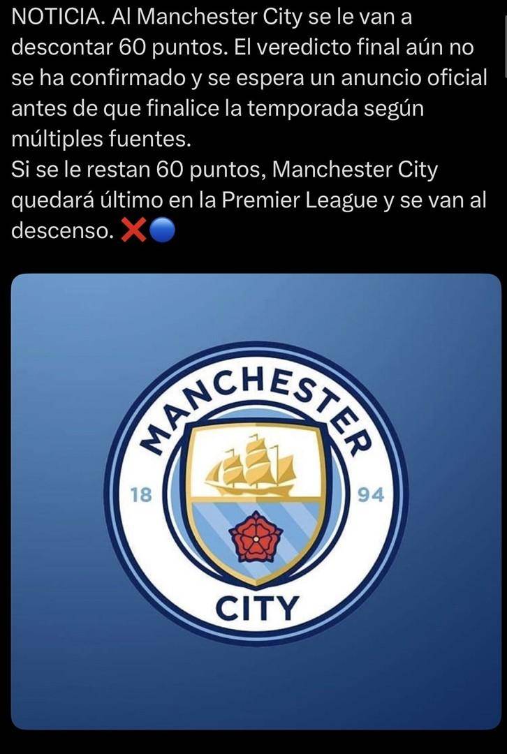 英超联赛的积分榜上,曼城目前以61分稳居第二,紧追榜首的阿森纳。 然而,一场酝酿已久的风暴即将彻底改变这个格局。 根据多家媒体报道,曼城因面临超过115项财务违规指控,可能被处以扣除40至60个联赛积分的重罚。 一旦最极端的60分罚单落地,曼城的积分将瞬间变为1分,从争冠热门直接坠入积分榜最底端,几乎锁定一个降级名额。 这个潜在的判决,不仅关乎曼城的命运,更将像一块巨石投入池塘,激起波及整个英超的连锁涟漪。